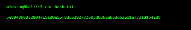 Imagine we found a password hash in a database dump. We don’t know the password, only the hash. For this example, I’ll use a common hash so you can see how the process works.