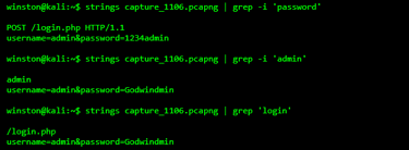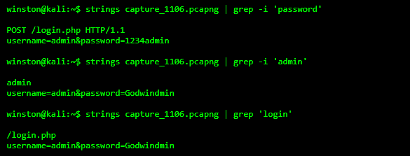 You don’t need fancy tools to find leaked credentials. A simple strings + grep combo can uncover everything, especially if SSL is not enforced. This is exactly how attackers scan PCAPs harvested from MITM or infected systems.