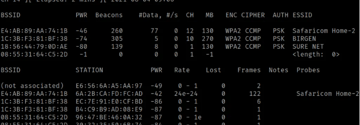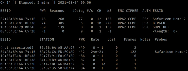 In this step, we'll conduct targeted packet sniffing to hack the password of the Safaricom Home-2 Wi-Fi network. However, there's a challenge ahead: the network employs the WPA2 encryption algorithm, known for its robust security measures.
