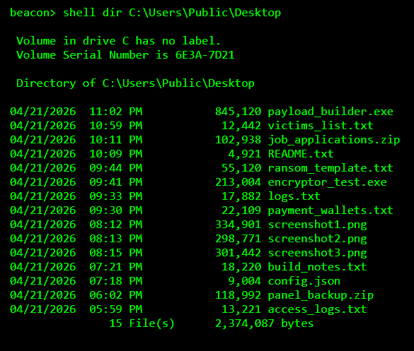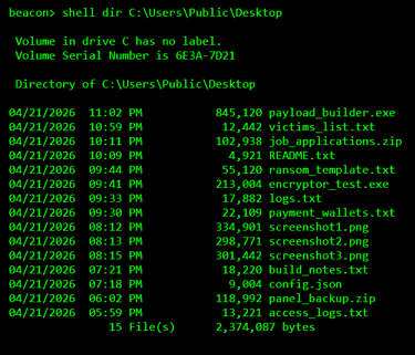This confirmed we were inside a normal Windows system. That alone tells you a lot about the attacker’s setup.
