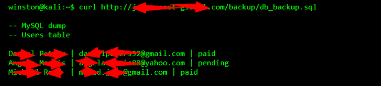 The presence of a backup endpoint earlier suggested that sensitive data might be stored without protection.